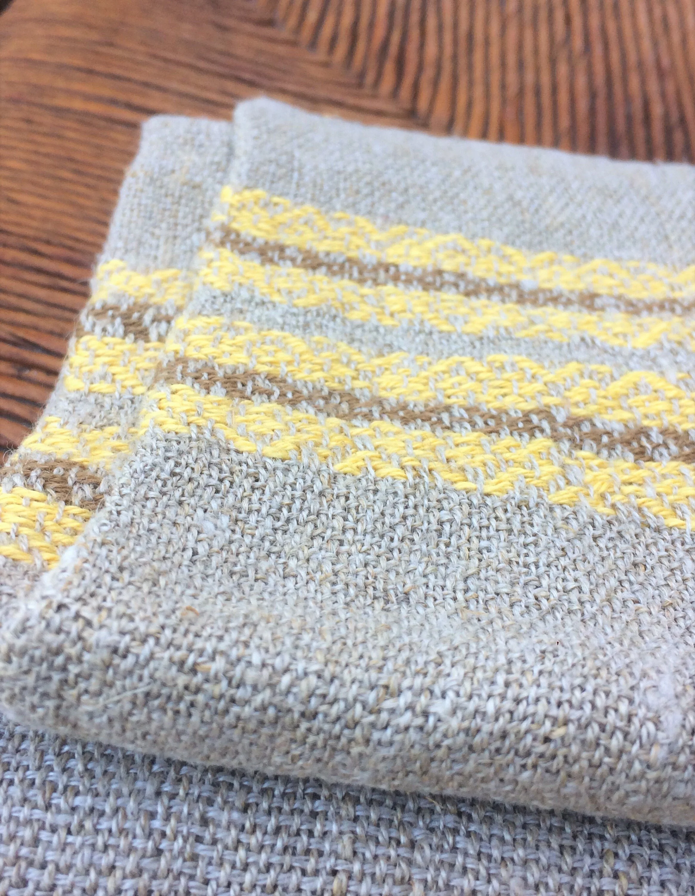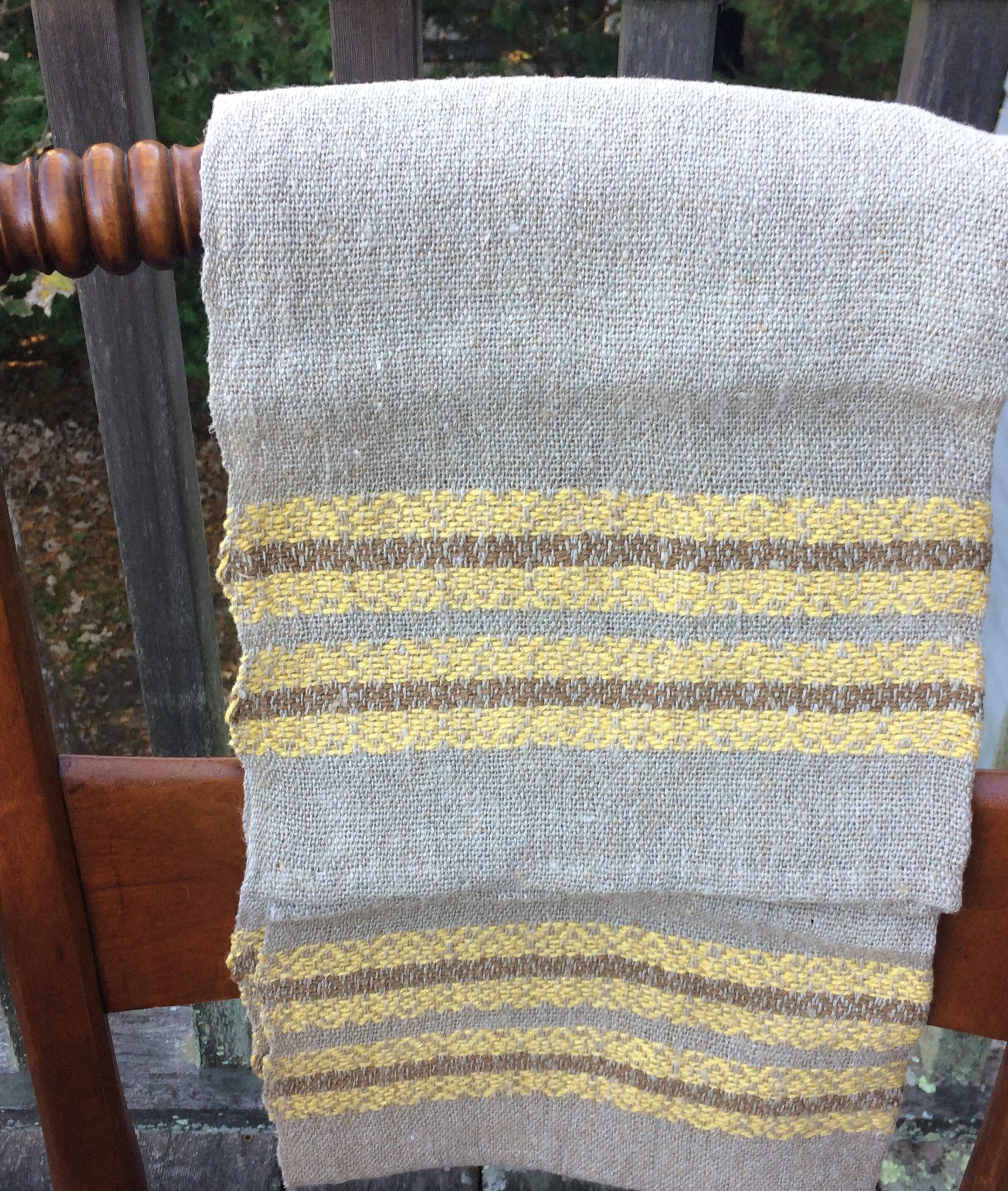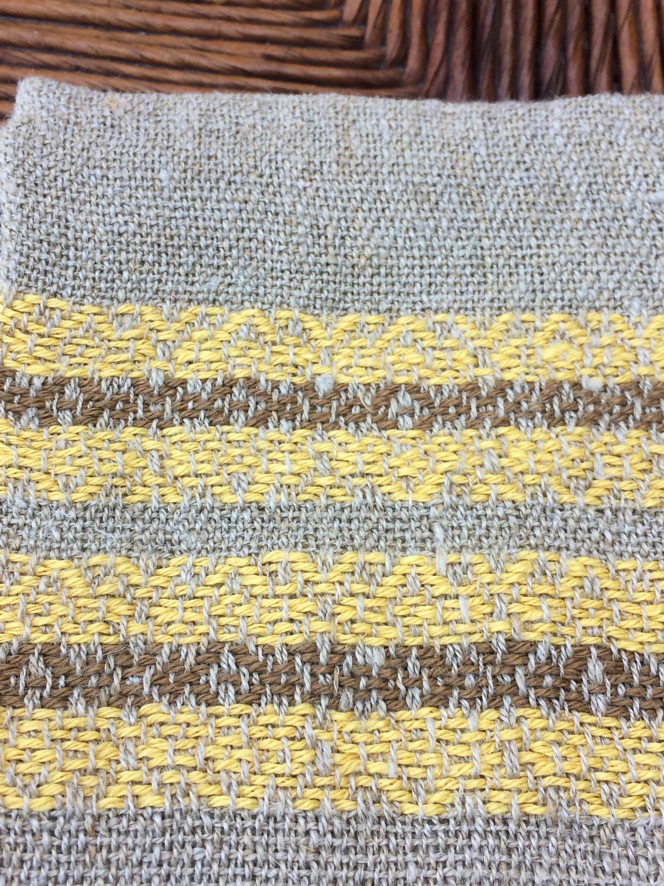 - Belgian coloured linen border thread selected for glossy, vibrant colours - a beautiful buttercup yellow and a warm burnt umber ginger