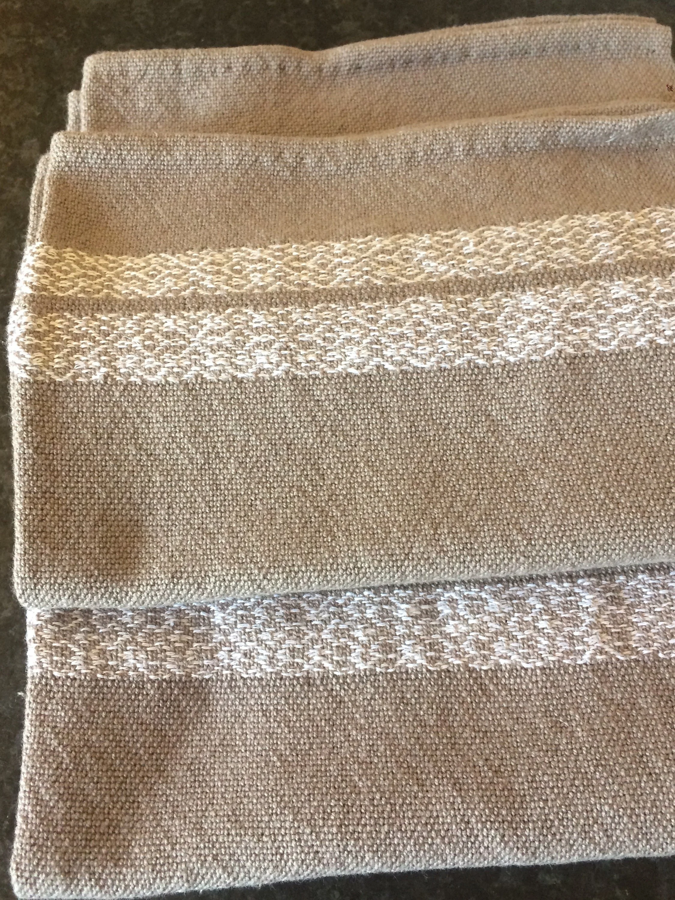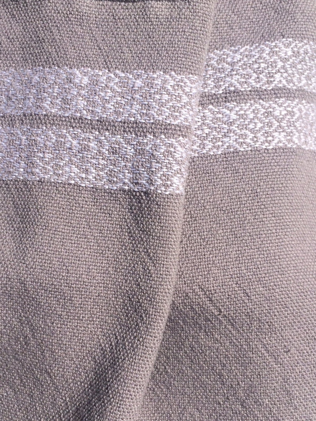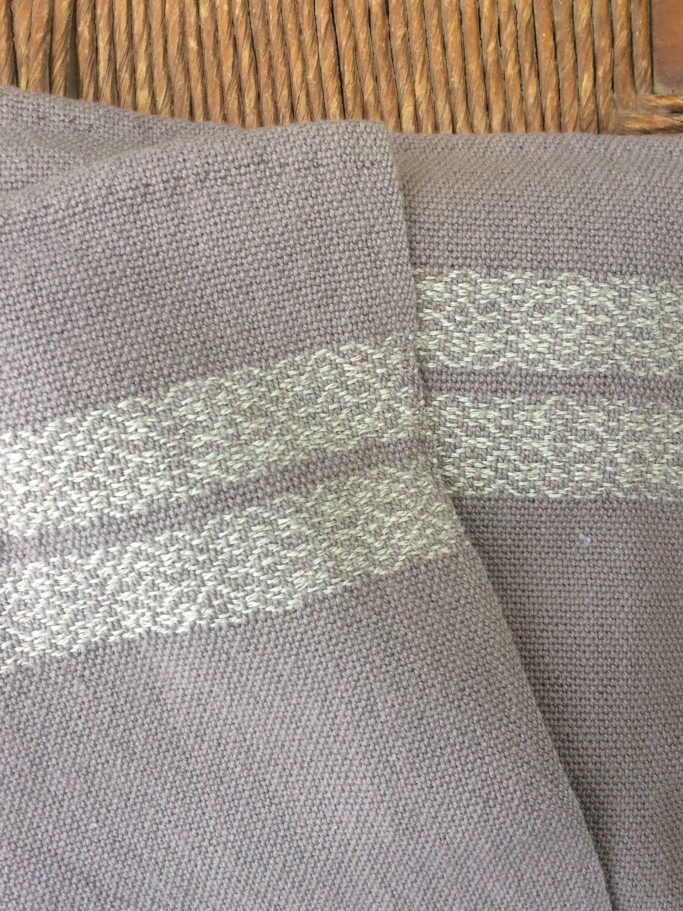 Prefer the impact of a white linen border on taupe background? Infatuated with undyed archaic Earl Grey linen on taupe? Can't decide?